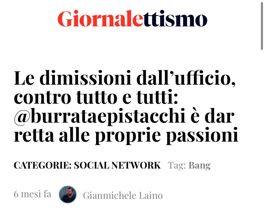 Ho iniziato a condividere la mia passione per quest’ultimo su Instagram (nel 2021) con la mia pagina @burrataepistacchi, dopo aver iniziato una nuova avventura lavorativa ed aver abbandonato il mio posto fisso in uno studio.