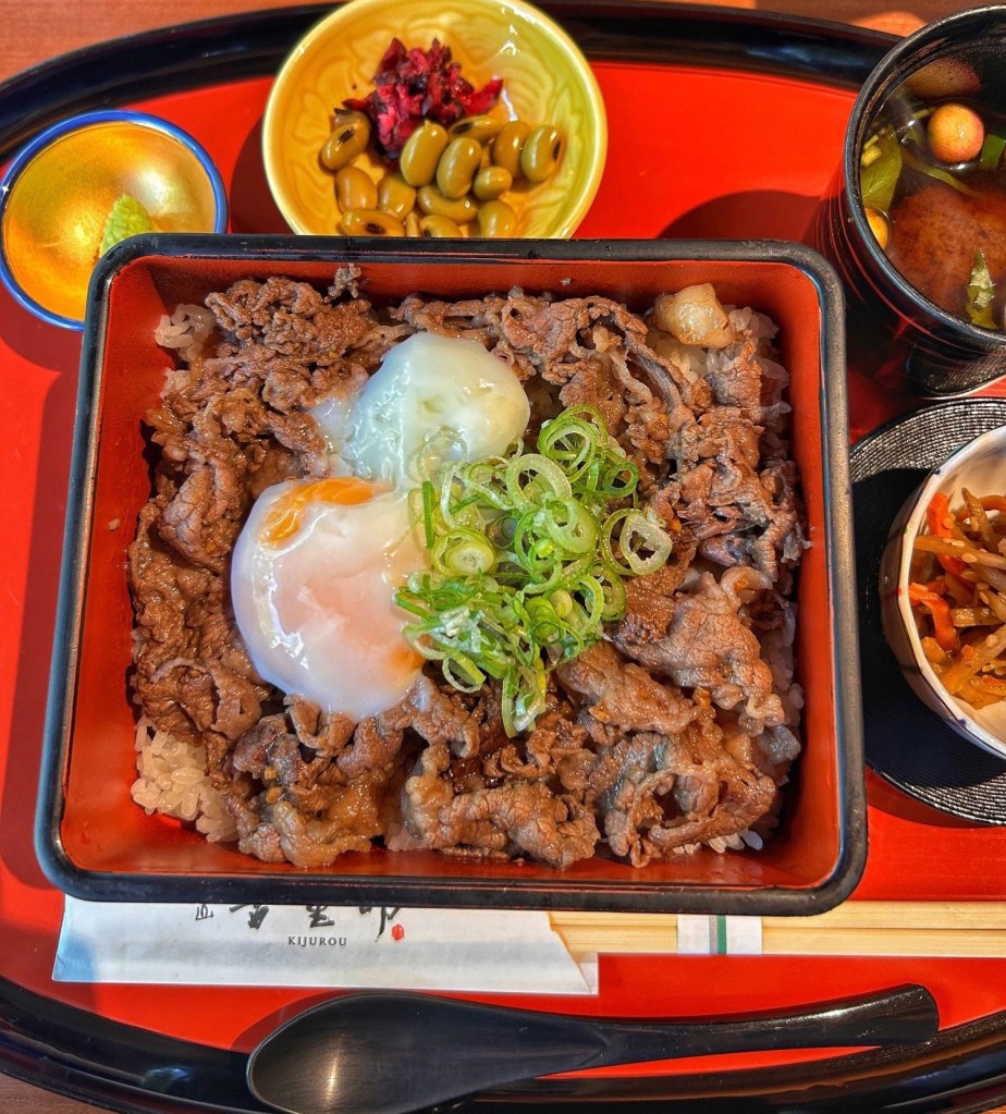 Kijurou è un ristorante incantevole poco distante dall’ingresso della foresta di bamboo. La specialità principale è la “Wagyu beef” ossia la carne di manzo giapponese. Noi abbiamo preso la box con l’uovo in camicia, tra i piatti più buoni mangiati in Giappone.