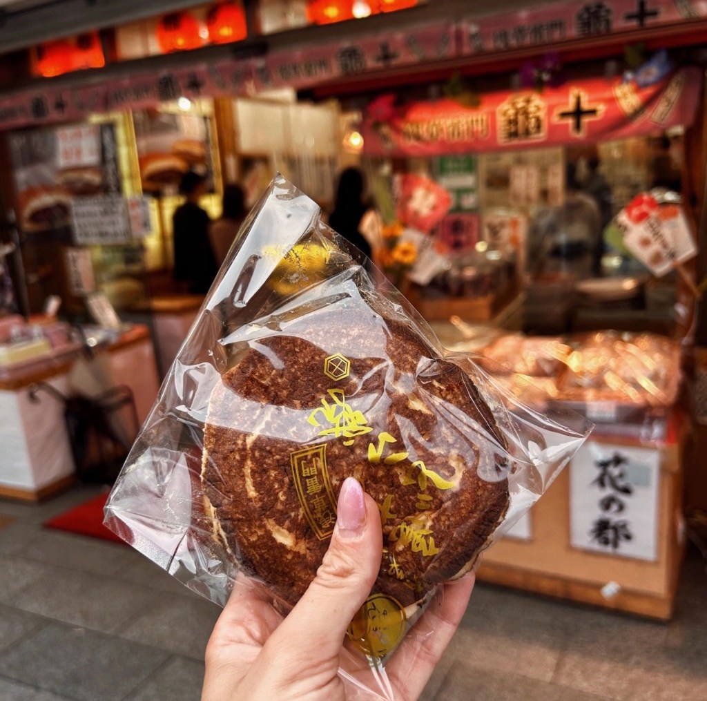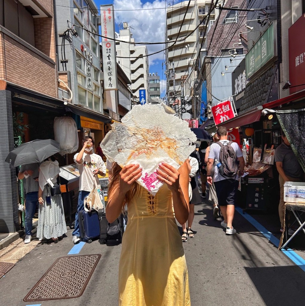 Presso il mercato del pesce Tsukiji si possono trovare tantissimi chioschi. Noi siamo stati attratti da quello che faceva i Senbei, cracker sottilissimi con dentro il gambero o il polpo. Molto particolari.