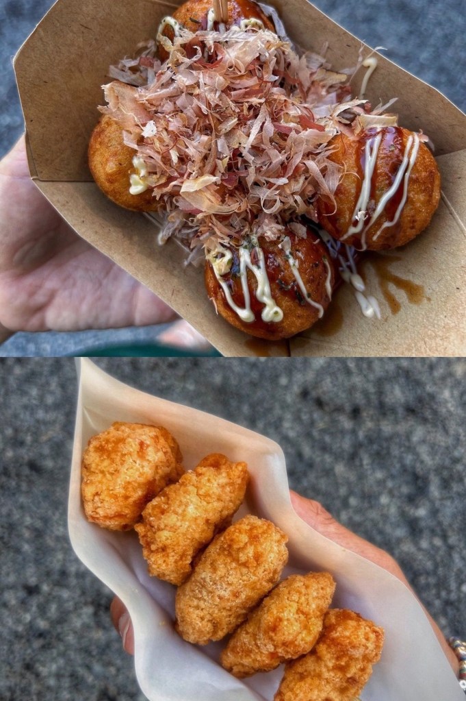 Abbiamo preso i Takoyaki (polpette di polpo) e i Karaage di pollo.