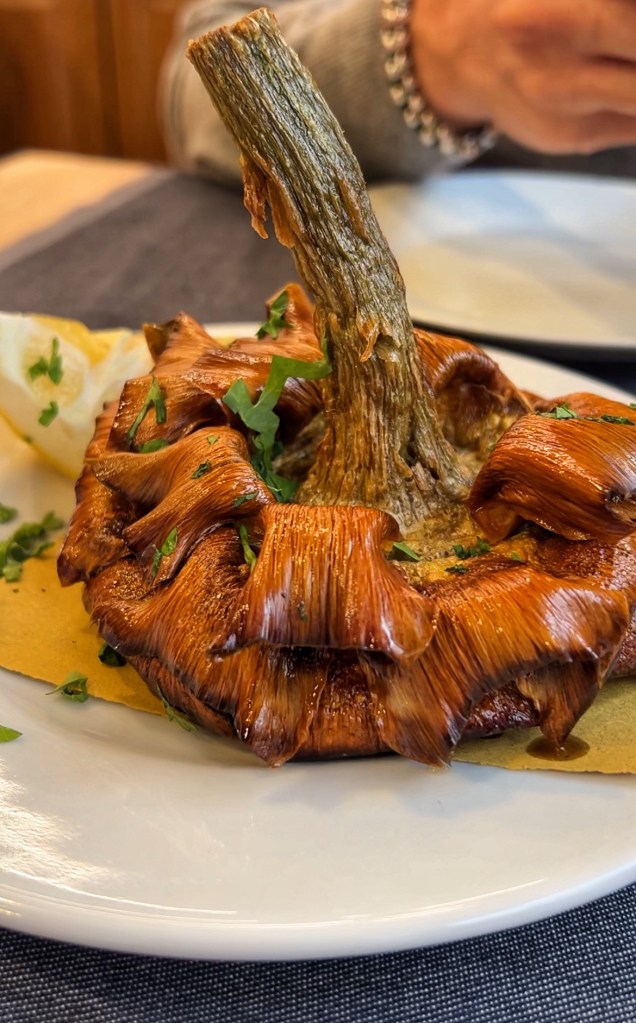 Noi abbiamo provato ovviamente la carbonara, l’amatriciana, il carciofo alla giudia e i saltimbocca.
