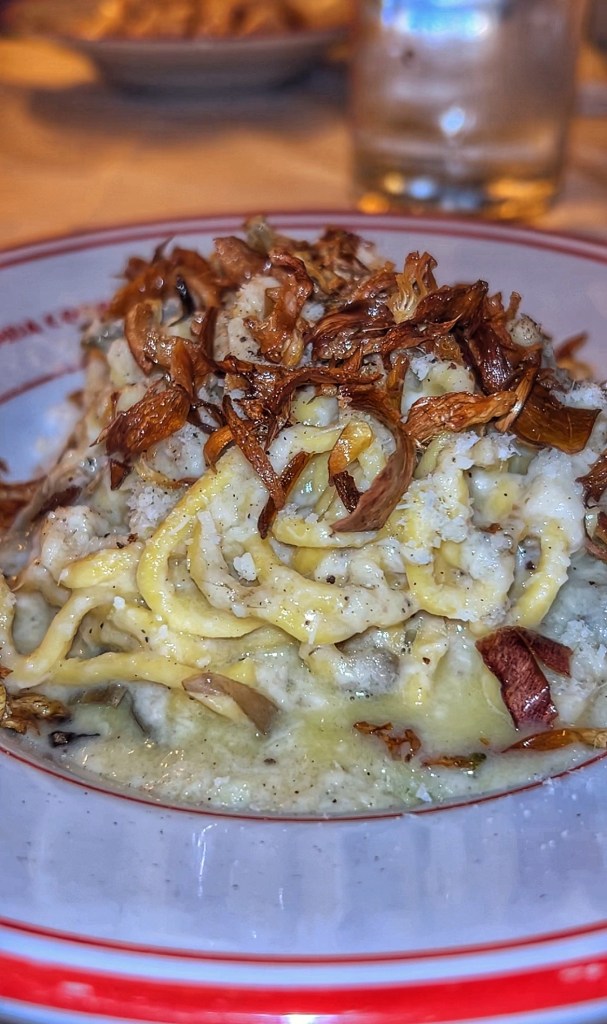 Noi abbiamo provato la gricia, il carciofo alla romana e la cacio e pepe con carciofi fritti.