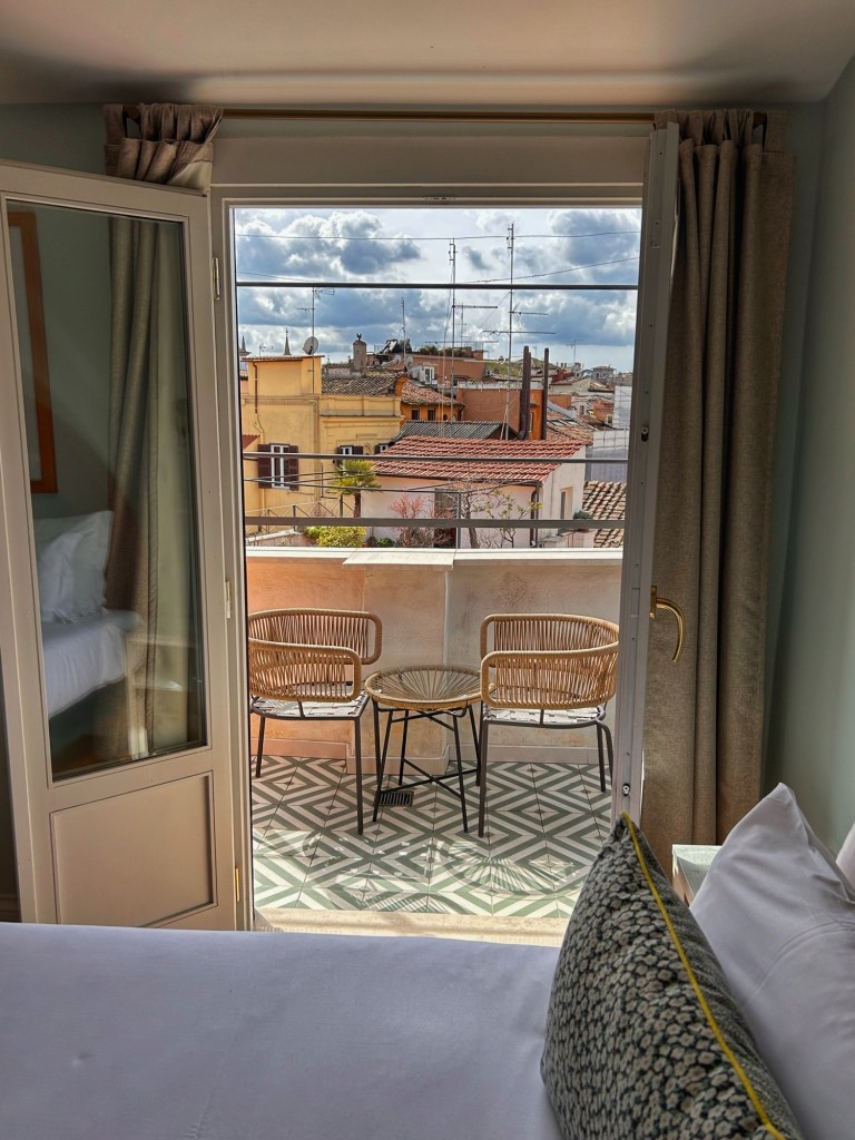Le camere accoglienti e ben arredate offrono un rifugio confortevole dopo una giornata di esplorazione e la vista panoramica sui tetti di Roma aggiunge un tocco di fascino all’ambiente.